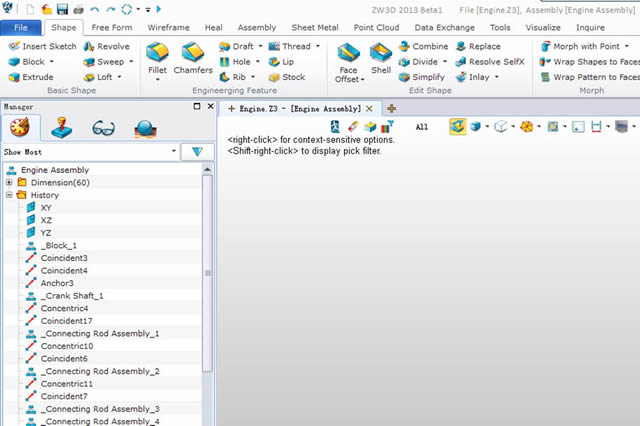 • Hybrydowe modelowanie, dzięki rewolucyjnemu i unikalnemu podejściu, pozwala użytkownikom na bezproblemową jednoczesną pracę z bryłami 3D, powierzchniami i modelami szkieletowymi.