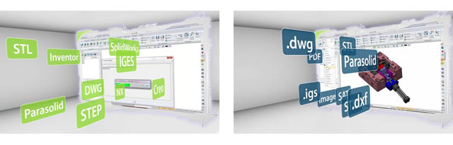 • Import i eksport plików w formatach STEP, STL, IGES, Parasolid, DWG, DXF i SAT. W nowej wersji wprowadzono znaczące ulepszenia samego importu oraz automatycznej naprawy plików, redukując możliwość pojawienia się otwartych krawędzi i ścian.