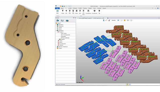 • Taktyka Otworów jest w stanie automatycznie określić cechy wszystkich elementów, w tym wielkości, głębokości i rodzaje otworów, a następnie wybrać odpowiednie narzędzia i operacje do obróbki wykańczającej. Pomaga to zaoszczędzić czas obróbki o 70%.